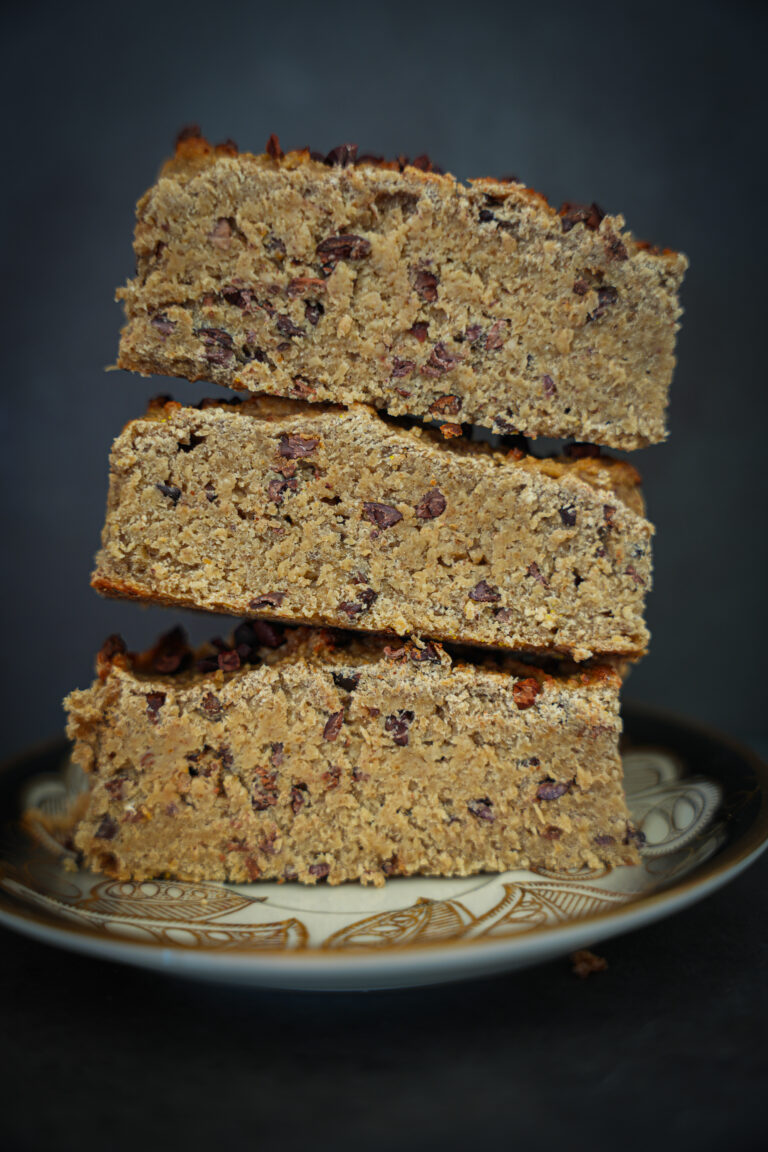 Ce banana bread moelleux et savoureux est fait à base de bananes mûres pour une douceur naturelle, des flocons d’avoine pour une texture consistante, et de la poudre de protéine végétale. Un tourbillon de beurre de cacahuète ajoute une touche de saveur de noisette, tandis que le lait végétal garde le pain tendre. Ajoute des éclats de cacao pour une touche chocolatée, si désiré.