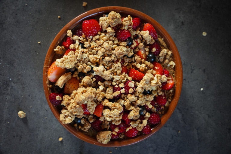 We all love the crunch of a good crumble. But if you’re like me and don’t eat butter, here’s an easy way to make your own crumble using olive oil instead.