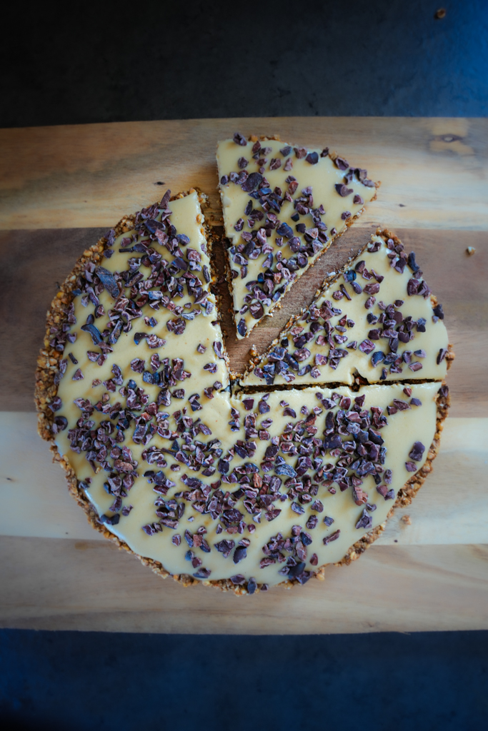 Pour la garniture, je recommande des éclats de fêve de cacao. En plus d’être plus sain que des pépites de chocolat, elles créent un super contraste avec la crème et offrent un extra croquant.